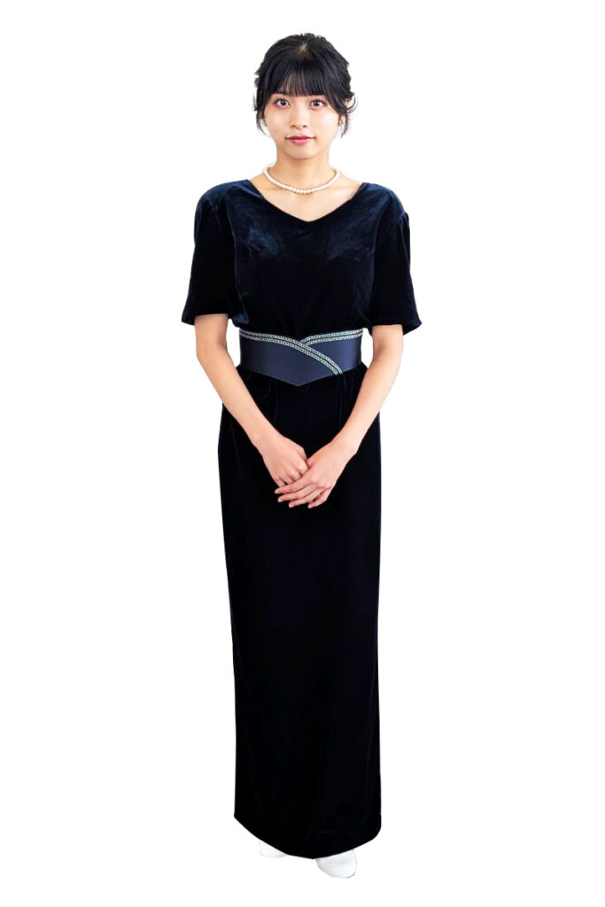 NAVY 2026.03.13 紺ロングドレス navy 重厚感のあるベルベット素材を贅沢に使用した一着。装飾を削ぎ落としたからこそ、その素材の良さが際立ちます。夜間のレセプションや、最高級のドレスコードが求められる場に。